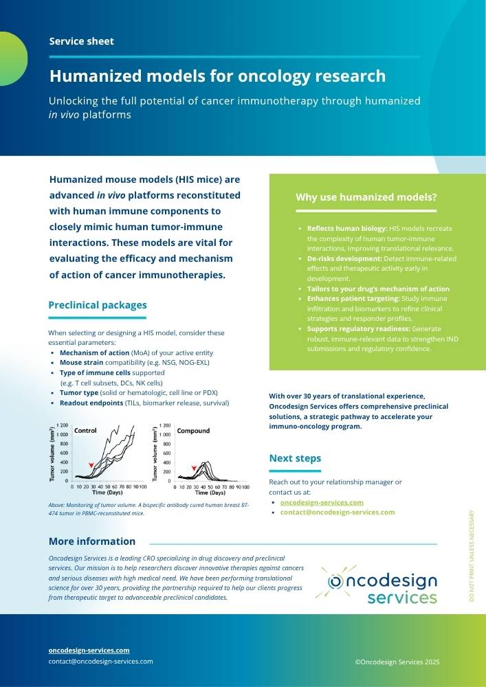 Explore the full technical sheet to discover how our humanized models can enhance your preclinical oncology programs.