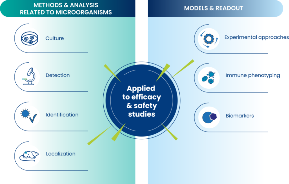 Oncodesign Services offers a broad range of technological approaches for culturing, detecting, identifying and localizing microorganisms (bacteria, yeasts, etc.) in simple or complex samples (fluids, tissues) coming from preclinical studies or clinical trials.